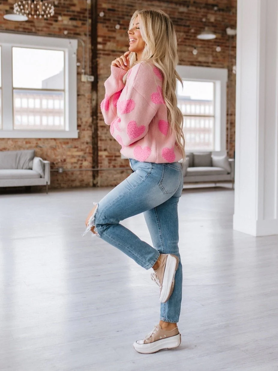 Fall in LOVE with the Fuzzy Heart Sweater in Pink